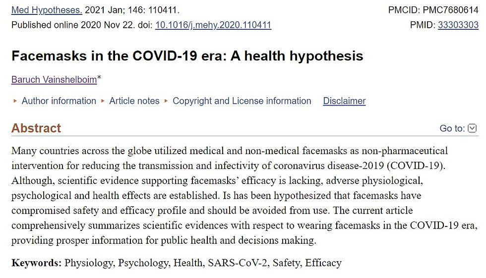米国国立衛生研究所の国立生物工学情報センター(NCBI)によって公表されたスタンフォード大学の客員研究者であるBaruch Vainshelboim博士の最近の論文において、マスクは、コロナの感染拡大防止に全く効果がなく、マスクの使用が有害であることが示された。