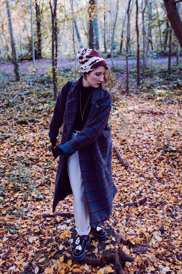 そして、日本にインスパイアされた私は、下北沢で買ったヴィンテージのコートと、東京で買ったハンドバッグで組み合わせてみました。今回のルックで、唯一の新しいものは、冬の寒い時期にピッタリのMonkiのビーニーです。