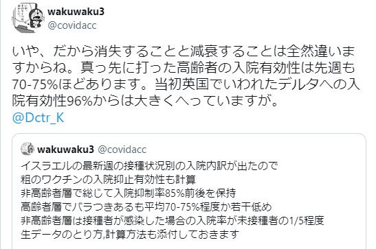 イスラエルでは、感染予防の有効性だけでなく、やっぱり、重症化予防さえもなくなっていることが指摘されていた。