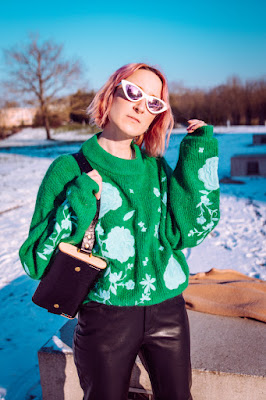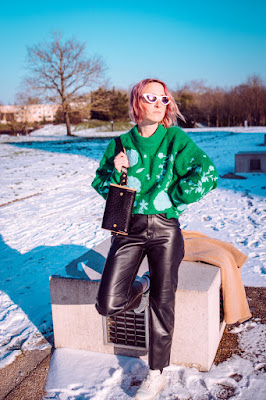前回は、レザーパンツをカラフルなアイテムと合わせたコーディネートをしてみたので、今回はカジュアルにセーターと合わせたコーディネートをご紹介したいと思います。このセーターは、ワードローブを整理していた際に見つけました。なんだか、新しい買い物をしたような気分になりました。このパンツの良いところは、寒い日や雨が降っているときでも、保温性があり、多少なりとも防水性があるので、とても実用的なところです。